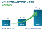 The data center automation market grows from USD 12.5 billion in 2025 to USD 33.8 billion by 2032, registering strong growth at 15.3 percent CAGR.