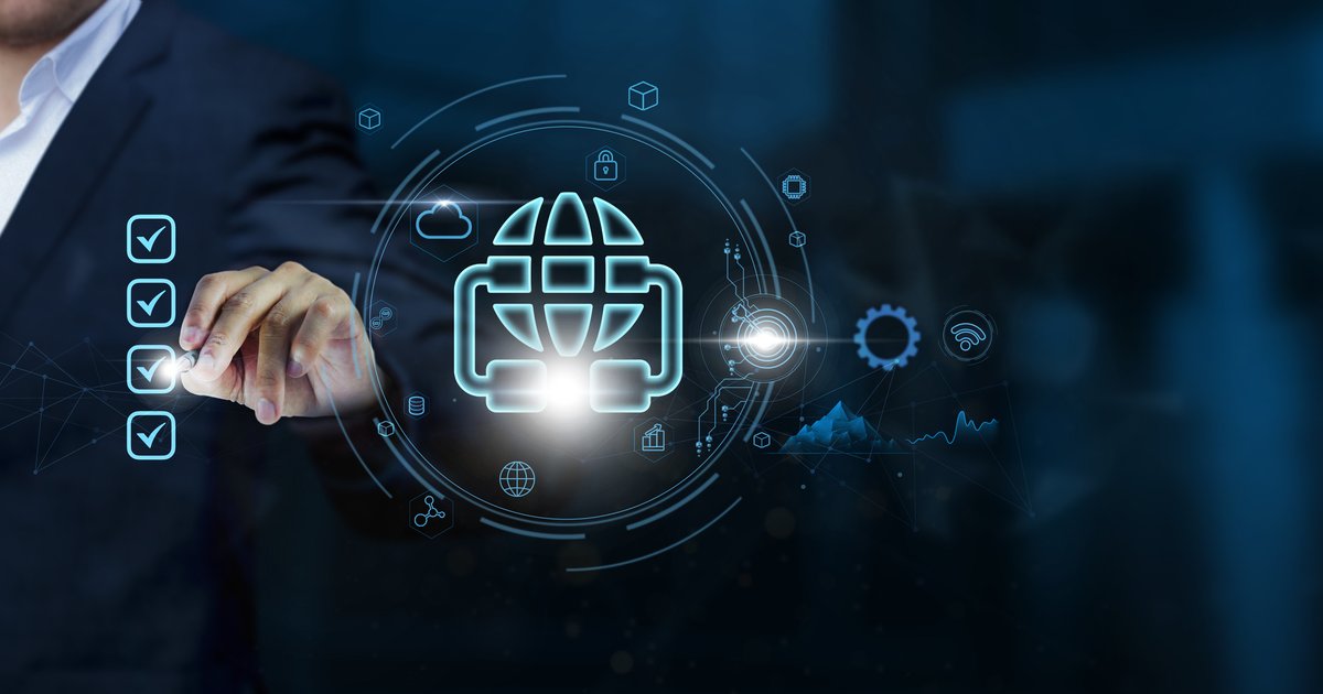 Hosting Telecommunications: Businessman checks Hosting Telecommunications technology and checklist approve, Integration of Business on virtual interface, Connectivity Concept.