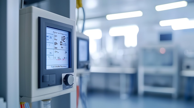 Digital sensors precisely measuring temperature and humidity levels in a controlled product testing environment for assurance and environmental monitoring.